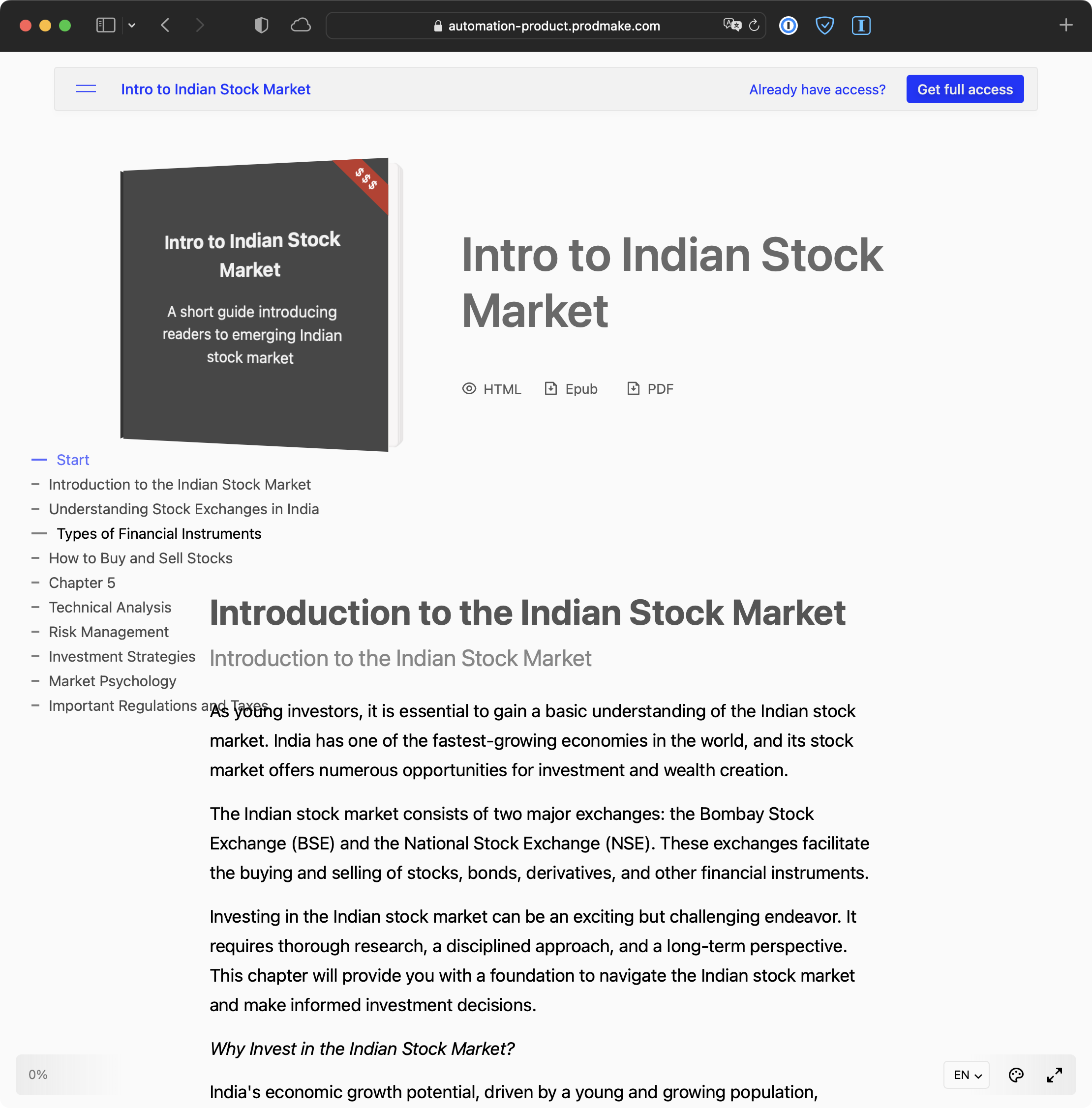 A short guide introducing readers to emerging Indian stock market titled “Intro to Indian Stock Market” for young investors with page count of 20.